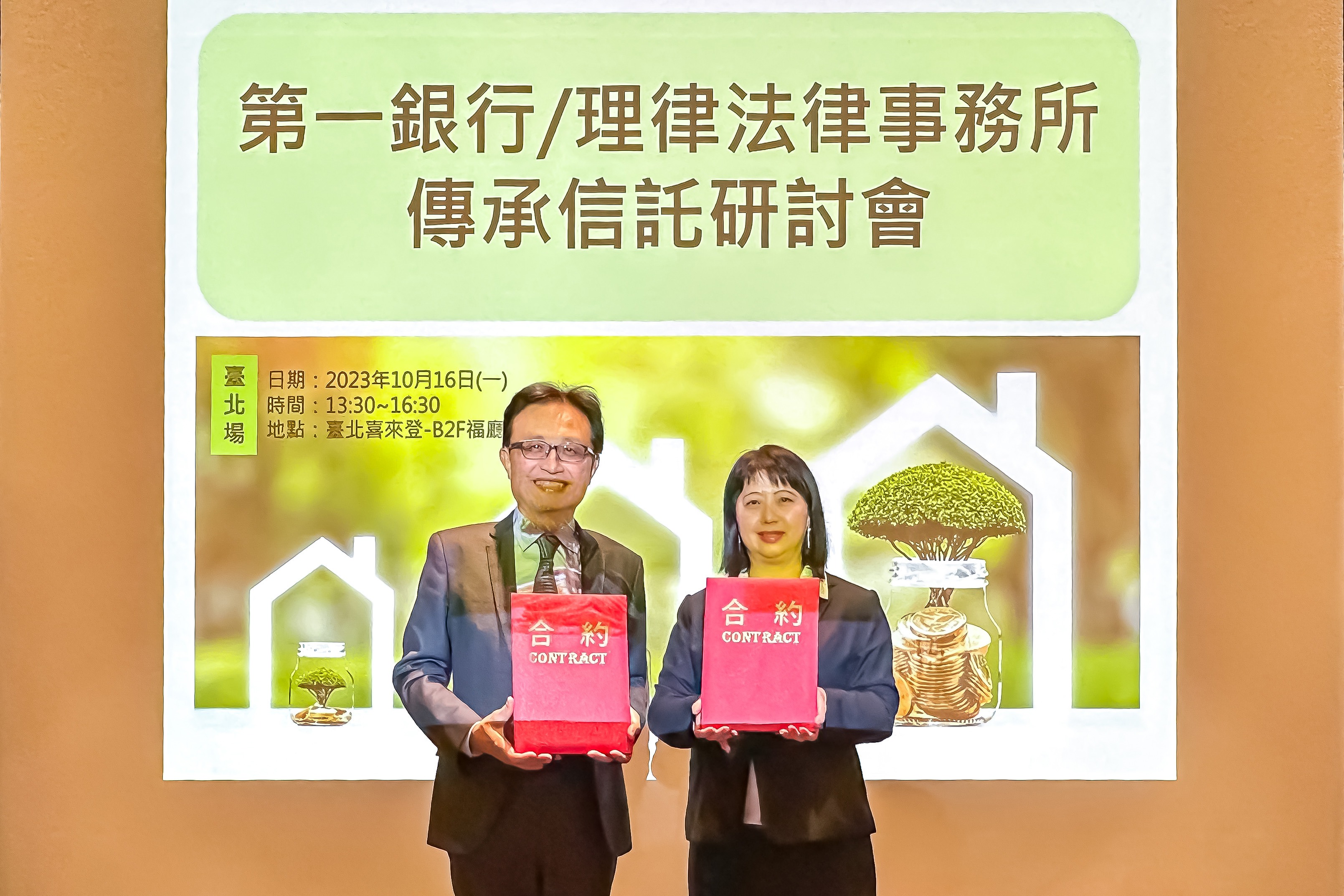 會中並宣布第一銀行分別與理律及策略聯盟機構「律盟聯合會計師事務所」、「律盟風險管理顧問公司」簽署合作意向書,共同為家族傳承客戶提供一站式整合性信託服務。