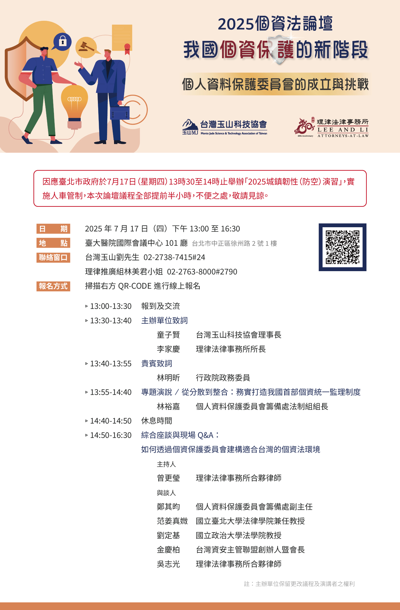 2025個資法論壇-我國個資保護的新階段 (個人資料保護委員會的成立與挑戰)